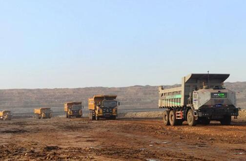 圖為運輸機器人帶領無人駕駛礦卡奔馳采場