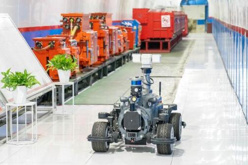 圖為準東煤電公司智能巡檢機器人在井下中央變電所進行巡檢