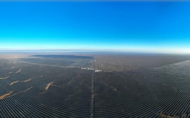 圖為國神準(zhǔn)東煤電公司60萬千瓦光伏項目,該項目是國家第二批“沙戈荒”大型風(fēng)光基地——古爾班通古特沙漠基地的重要組成部分