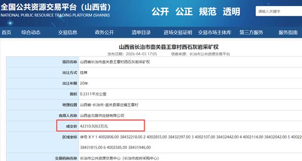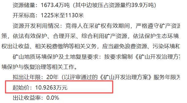 金北宸供應鏈有限公司(以 4.23億元的價格競得該礦權,溢價率高達387139%。