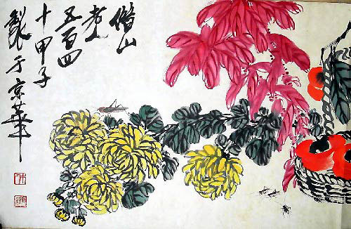 6,墨彩騰發的“單色畫法”。(單純、明快的裝飾風格)齊白石在設色方面的成功,除了善于吸取民間藝術的養分,敢用大紅大綠。能夠“從俗”,同時又知法善變。擅于結合和發揚傳統筆墨技法的長處。充分發揮水對色、墨的巨大作用及有機聯系。