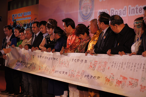 作為下屆“絲綢之路國際合作論壇”承辦方的中國長城學(xué)會領(lǐng)導(dǎo)交接了下屆承辦權(quán)。
