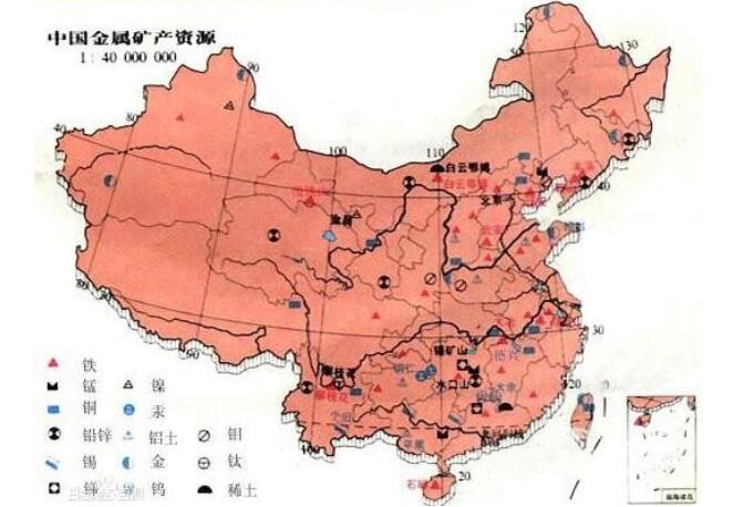 66,中國:鎢、稀土、銻、鉬、汞、釩、鈦、煤、鐵、鉛鋅、銅、銀、錫、鎳、磷灰石、石棉儲量居世界前列。