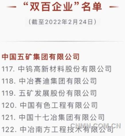 近日,國務院國資委網站公布最新“雙百企業”名單,中國五礦所屬6家企業繼續入列。