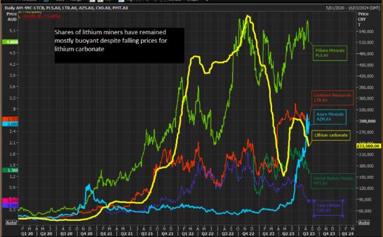 然而,它們不愿為上市生產商支付高價,這些生產商的市場估值在價格飆升的背景下飆升,而它們承諾,電動汽車和鋰電池的銷售將帶來需求飆升,但它們的出價遭到了拒絕。