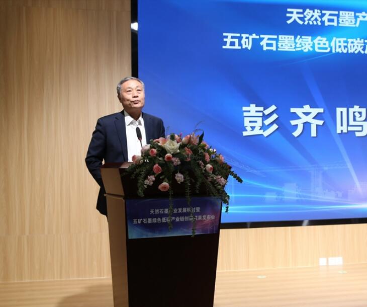 實地參觀了五礦石墨綠色低碳產業鏈建設情況之后,彭齊鳴表示,五礦石墨王炯輝董事長早在2011年率先提出“新技術礦產”概念,著眼于高新產業發展來進行礦產資源勘查開發,站位非常高,是跳出資源看資源。面對礦業發展中安全和生態環境兩個最大的挑戰,五礦石墨聚焦科技創新和資源高質化利用,高標準開展產業項目建設,通過智能化、無人化,將礦業工人由藍領變成白領,最終從根本上解決礦業安全問題。彭齊鳴認為,五礦石墨的實踐和成就用生動的實例展示了礦業安全發展、綠色發展、創新發展、融合發展的理念和中國礦業發展的美好前景?! ?月21日,由鶴崗市人民政府和中國五礦集團(黑龍江)石墨產業有限公司(下簡稱“五礦石墨”)共同主辦的天然石墨產業發展研討暨五礦石墨綠色低碳產業鏈創新成果發布會在鶴崗市蘿北縣召開。