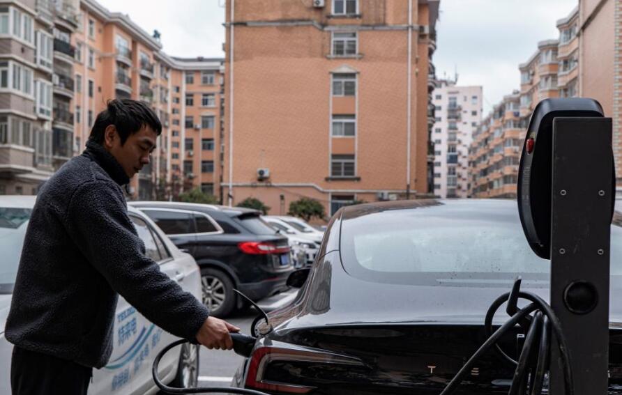 這是2月3日,居民在陜西省漢中市漢臺(tái)區(qū)明珠小區(qū)新建的充電樁充電。新華社記者陳昌奇 攝