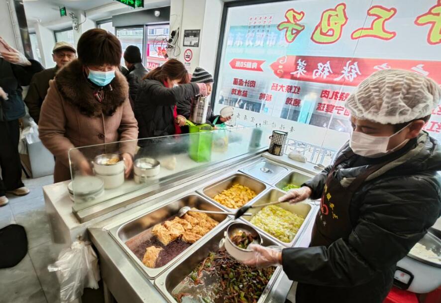 1月24日,居民在浙江省杭州市臨平區(qū)廟東社區(qū)康養(yǎng)綜合體打飯用餐。新華社記者林光耀 攝