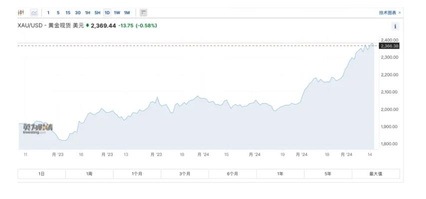 當(dāng)前,國(guó)際黃金正掀起一輪大牛市,國(guó)際金價(jià)不斷刷新歷史高點(diǎn),4月12日,現(xiàn)貨黃金一度漲至2431.53美元/盎司,創(chuàng)出歷史最高紀(jì)錄,年內(nèi)最大漲幅達(dá)17.9%。