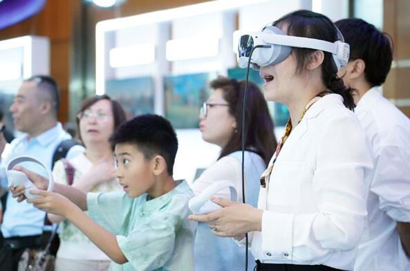 7月2日至5日,以“開啟數智新時代,共享數字新未來”為主題的2024全球數字經濟大會在北京國家會議中心舉辦。圖為7月2日,觀眾在2024全球數字經濟大會數字經濟沉浸式體驗區體驗一款VR設備。新華社記者 任超 攝