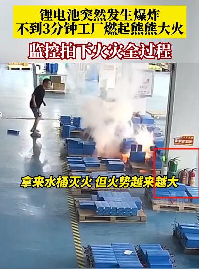 10月21日報道,廣東佛山一鋰電池工廠半成品倉庫突然冒起白煙。在工人查找煙霧來源時,一塊電池突然爆炸,緊接著第二聲爆炸響起。這是員工提來水桶滅火,但火勢反倒越來越大,不到3分鐘工廠就燃起熊熊大火。