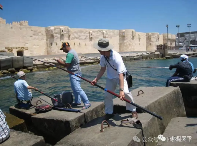 卞洪登博士在埃及蘇伊士運(yùn)河港口邊釣個(gè)魚