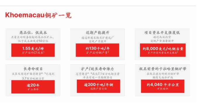 Khoemacau 銅礦是五礦資源(01208.HK)在博茨瓦納布局的核心銅礦項(xiàng)目,位于卡拉哈里銅礦帶(新興潛力礦帶),憑借 “高品位、低成本、長(zhǎng)壽命” 的特點(diǎn),是中非礦業(yè)合作中兼具盈利性與可持續(xù)性的標(biāo)桿項(xiàng)目。