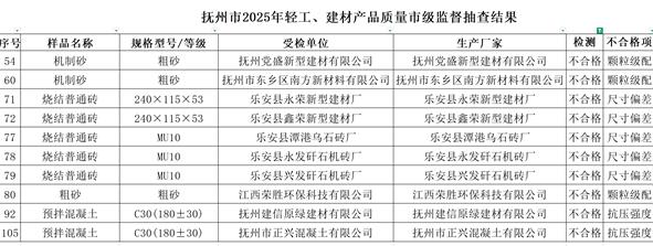日前,江西省撫州市市場監(jiān)督管理局發(fā)布《撫州市2025年輕工建材等產(chǎn)品質(zhì)量市級監(jiān)督抽查結(jié)果》。