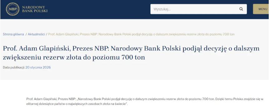 在2025年最后幾個月,波蘭大舉增持黃金,當時正值市場波動加劇與地緣政治緊張局勢升溫之際。
