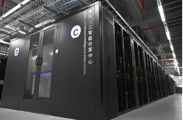 2025年11月2日拍攝的安徽省宿州市算力產業園淮海人工智能計算中心服務器。新華社記者 黃博涵 攝