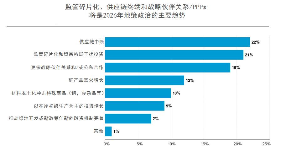 調(diào)查報告強(qiáng)調(diào),如2025年所見,供應(yīng)鏈中斷仍將是今年最大風(fēng)險之一。幾乎同等數(shù)量的受訪者認(rèn)為國家政策碎片化是另一個關(guān)鍵問題。
