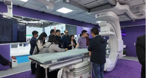 第93屆CMEF現場,GE醫療展示其Allia Celeo MAX朱雀旗艦型血管造影系統。新華網邐琛 攝