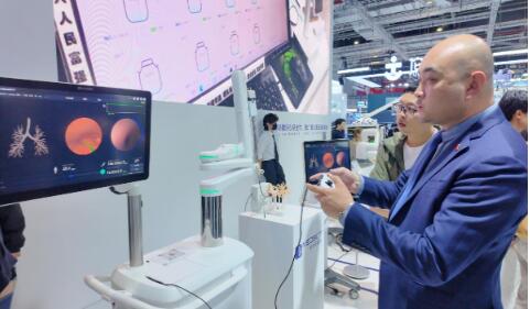 第93屆CMEF現場,微創展示其支氣管肺癌早診機器人。新華網邐琛 攝