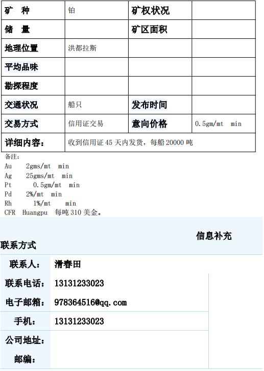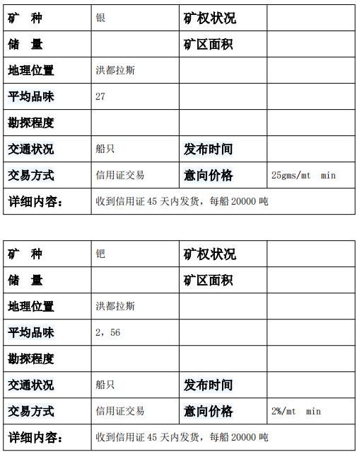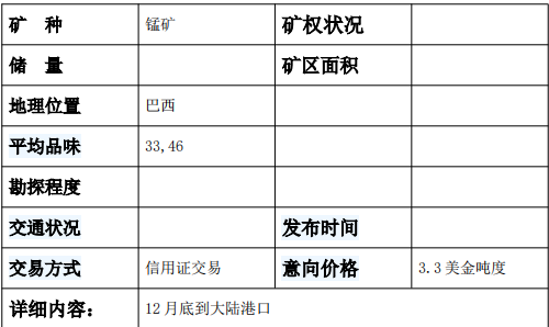 錳礦30000噸,本月底左右到中國港口。金銀礦收到信用證45天后交貨,20000噸